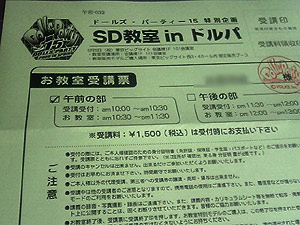 管理人様、スペースお借りします(*´∇`*) 5/5に開催される「SDメイク教室inドルパ」にて購入予定の、 教室MSDマーガレットの譲り先を探しております。 ※教室ヘッドAとCはお譲り先が決まりましたので、 タイトルと内容を訂正させて頂きました。 受講票の本名部分にぼかしを入れましたが、お取り引き時にはちゃんと全体を撮ったものと、身分証明書と通知の入っていた封筒を一緒に撮ったもの(住所を照らし合わせて確認して頂けます)を提示いたします。 ドルパ当日、会場にて直接お引き渡しも可です。 当日ドタキャンされても困るので出