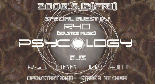 管理人様告知失礼します。 = Monthly psycology = 2006/5/12(Fri) @STAGE2 Open/Start 23:00〜 -Special Guest DJ- RYO (SOLSTICE MUSIC) -DJs- Ryu (burn up/psycology) O.K.K (psycology) 102 (psycology) DIMI (psycology) -Entrance Fee- Male Door:3,000yen(1D) with flyer:2,000yen(1D) Ladies Door:1,500yen(1D) with flyer:1,000yen(1D) お問い合わせは http://homupi.jp/psycology