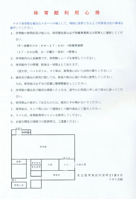 「名古屋でバスケ」コミュ参加者200人到達記念オフ会! 日時&場所確定しました。 コートについては参加者の状況をみてもう1面追加も検討しますが、基本的に交流目的のバスケということで、1面で予約してあります。 【ナオリ会館】 住所:名古屋市東区代官町27番地5号 電話:052−935−6011 詳細:ナオリ健康保険組合の管理施設。(ナオリ健康保険組合は全国の繊維製品卸販売業の事業所が加入できる健康保険組合。) ホームページ: http://www.naori-kenpo.jp/ 地図等: http://www.kenporen-aichi.jp/map/map04.htm *地下鉄車道
