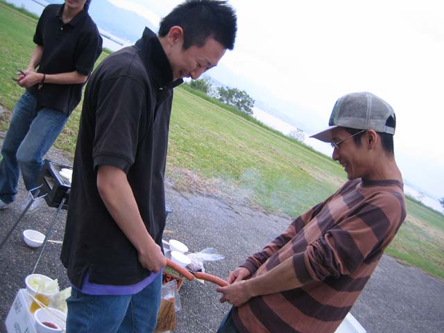 さて、がっつりレポートをアップしていきたいと思います(・ω・)ノシ とにかく盛り上がったバーベキュー大会、残念ながらかりちゃんはドタキャンでした…_| ̄|○ ガクッ 写真1はトントロとヤス(・ω・)bグッ 写真2はともだちんこ(@'ω'@)ん? 写真3は座位です(・ω・)ノシ 焼肉MAWARIオーナーの田口が和牛ミックスを用意したため、バーベキューっていうか和牛焼肉状態でした(○`〜´○)ウマイウマイ おなかいっぱいになったあとは草野球大会(・ω・)ノシ 湖岸相撲大会とスポーツづくしで楽しんでいきました(。-_-。)