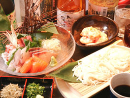 ★禁煙・個室ダイニング・オフ★ 2006年06月07日(水) 19:00-21:00 (18:50集合)) 場所 池袋東口(参加者にお知らせ) 有機野菜や和豚もちぶたをはじめとして… 福島県小名浜港の産直鮮魚や秋田県名産の 稲庭うどんなど、こだわり素材に当店ならではの アレンジを加えた逸品料理とお飲物を御用意。 予算 2H 3,500-(飲み放題付き/税込) ■コース(全7品) 前 菜 懐石四種盛り合わせ 菜 盛 魚介のサラダ 青紫蘇ドレッシング 焼 肴 鶏の柚子胡椒焼き 煮 肴 里芋と湯葉の蟹餡かけ 揚 肴 三種盛り合わせ 飯 物