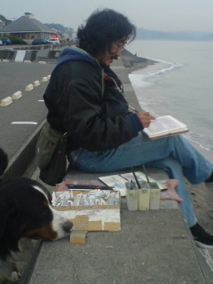表題の内容で、soulsurf さんの自己紹介を参考に、知られざる?ピースな?かっこいい?恥ずかしい?亀山さんの姿!盗撮投稿お願い致します。6月28日個展最終日に亀山さん自身に最優秀写真を選んで頂きましょう。 協賛:jazzmine(笑) 最優秀賞の発表は[亀山和明Tortoise] コミュニティー内で発表致します。お楽しみに! 写真は2005年11月11日 愛犬と共に亀山さん発見!!
