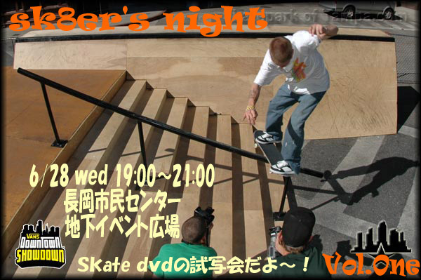 Çß±«¤ËÆþ¤êÅ·µ¤¤âµ¤Ê¬¤â¥¸¥á¥¸¥á¢¨ ³ê¤ê¤Ë¤â¹Ô¤±¤º¤ËÌ塹¤·¤Æ¤ë¤¢¤Ê¤¿¤Ã¦ÒŽß§ÕŽß) ²Æ¤Ë¸þ¤±¤Æ¥Æ¥ó¥·¥ç¥ó¤¢¤²¤Æ¤¯¤¿¤á¤Ë Âè1²ó¡ùsk8er's Night¡ù¤È¤¤¤¦Ì¾¤Î¥Ó¥Ç¥ª¾å±Ç²ñ(Žß§¥Žß)¤ò¹Ô¤¤¤Þ¤¹¡ª¡ª »²²Ã¼Ô¤Ï¼«Í³¤Ç¤¹¡ªµ¤·Ú¤Ë»²²Ã¤·¤Æ¤¯¤À¤µ¤¤¡ª¡ª ²¶¤Ï¥¤¥ó¥é¥¤¥ó¤ä¤Ã¤Æ¤ë¤±¤É¥¹¥±¡¼¥¿¡¼¥Ó¥Ç¥ª¤Ë¤â¶½Ì£¤¢¤ë¤Ê¡ª¤È¤«¡¢¥¹¥±¡¼¥È½é¿´¼Ô¤Ê¤Î¤ÇÊÙ¶¯¤·¤Æ¤ß¤¿¤¤¡ª¤È¤«¥¹¥±¡¼¥¿¡¼Í§Ã£½¸¤á¤ÆÂ罸¹ç¤·¤Á¤ã¤Ã¤Æ¤¯¤À¤µ¤¤¡ª »²²ÃÈñ¤Ï¡ù̵ÎÁ¡ù¤Ç¡¢»²²Ã¼Ô¤Ë¤Ï°û¤ßʪ¤Î¥µ¡¼¥Ó¥¹¤Ä¤¡ª¡ª ½é¤á¤Æ³«ºÅ¤¹¤ë¤È¤¤¤¦¤³¤È¤Ç¡¢½é²ó¤Ï¥¹¥±¡¼¥È¥Ü¡¼¥É¤ÎDVD¤ò¾å±Ç¤¹¤ëͽÄê