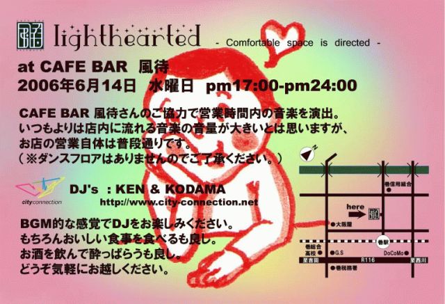 Comfortable space is directed¡ª¡ª¡ª CAFE BAR É÷ÂÔ¤µ¤ó¤Î¤´¶¨ÎϤDZĶȻþ´ÖÆâ¤Î²»³Ú¤ò±é½Ð¡£ ¤¤¤Ä¤â¤è¤ê¤ÏŹÆâ¤Ëή¤ì¤ë²»³Ú¤Î²»Î̤¬Â礤¤¤È¤Ï»×¤¤¤Þ¤¹¤¬¡¢ ¤ªÅ¹¤Î±Ä¶È¼«ÂΤÏÉáÃÊÄ̤ê¤Ç¤¹¡£ ¡Ê¥À¥ó¥¹¥Õ¥í¥¢¤Ï¤¢¤ê¤Þ¤»¤ó¤Î¤Ç¤´Î»¾µ¤¯¤À¤µ¤¤¡£¡Ë DJ's : KEN & KODAMA (city-connection) BGMŪ¤Ê´¶³Ð¤ÇDJ¤ò¤ª³Ú¤·¤ß¤¯¤À¤µ¤¤¡£ ¤â¤Á¤í¤ó¤ª¤¤¤·¤¤¿©»ö¤ò¿©¤Ù¤ë¤âÎɤ·¡£ ¤ª¼ò¤ò°û¤ó¤Ç¿ì¤Ã¤Ñ¤é¤¦¤âÎɤ·¡£ ¤É¤¦¤¾µ¤·Ú¤Ë¤ª±Û¤·¤¯¤À¤µ¤¤¡£ http://www.city-connection.net