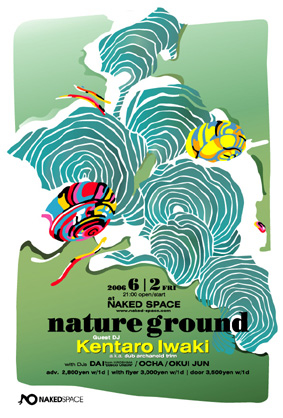 【 NATURE GROUND 】 2006.6.2(Fri) at NAKED-SPACE http://www.naked-space.com/ Start: 21:00~ Guest Dj: Kentaro Iwaki a.k.a Dub Archanoid Trim/BLOWMAN Djs: DAI(DISCO UNION from Hiroshima) OKUI JUN OCHA(LIBERO/MUZIK COMMUNE) Fee: Adv 2,800yen w/1d W/Flyer 3,000yen w/1d Door 3,500yen w/1d