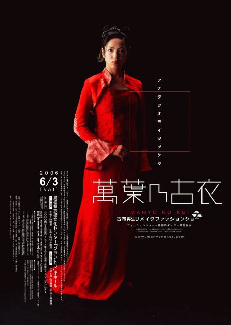 益田で開催のイヴェントですが、告知をさせて頂きます もし不適切であれば削除をお願い致します 各メディアで紹介して頂いています古布再生リメイク ファッションショーのご案内です これまでにない独創的な萬葉恋物語 その演出は、ファッションショーを超えたファッション ショー披露服総数約100着による全3部構成の舞台 日本音楽集団杵屋五司郎氏を迎え、炎太鼓、フルー ト、和笛奏者による演奏で舞台を時に優しく、時に激 しく盛り立てそして、ダンスの熱い鼓動、映像、照明 デザイナーによる奥深い演出 舞台は、躍動的かつ幻想
