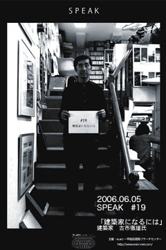W.arc主催によるSPEAK#19として 古市徹雄先生による講演会「建築家になるには」を行います。 17時30分開演 18時00開始を予定しております。 2部には、ワインパーティーと題した懇親会を開催。 つまみに早稲田建築学部3年生の課題作品を ご用意しております。 ふるって御参加ください。 詳細は、こちらまで http://www.warc-net.com/