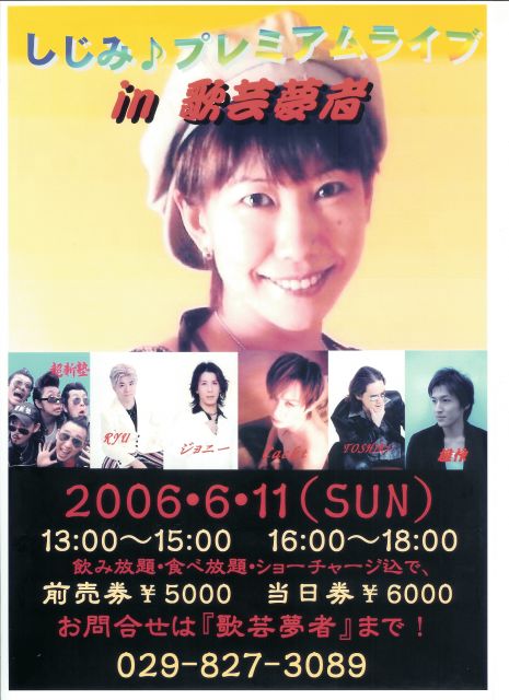 上野から特急フレッシュひたちで約45分。 準急でも1時間ちょっとの所に在る茨城県は土浦市の ものまね居酒屋『歌芸夢者』にて、しじみプロデュース・プレミアムライブを開催します♪ 演目は『しじみと不愉快な仲間たち』!! と題し、日頃仲良くしてる、お笑い芸人・ものまね芸人のライブを企んでます(-_☆) 1部 13:00〜15:00 2部 16:00〜18:00 の2部制 飲み放題・食べ放題・ショーチャージ込みで、 前売り¥5000・当日¥6000です。 先着順限定各100名様となっております。 既に九州・山陰地方から申し込み殺到中! お