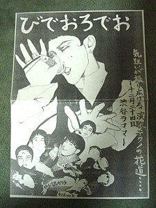 出演者さま決定いたしました。 2006年6月11日(日)@初台 DOORS OPEN PM5:00 START PM5:30を予定してます。 前売り \3000 当日 \3500 出演 アウフヘーベン ASTRO−B 航空電子 ビデオロデオ 木魚 ピノリュック ハッチャキ コミュ http://mixi.jp/view_community.pl?id=431716 木魚 コミュ http://mixi.jp/view_community.pl?id=431738 アウフヘーベンコミュ http://mixi.jp/view_community.pl?id=432749 アウフヘーベンのサイト http://aufheben-s.net/ ビデオ