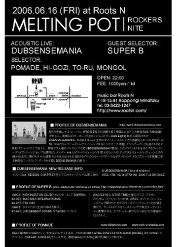 NYの老舗レゲエレーベル、WACKIE'Sでの活動を経て帰国したピアニカ奏者RAS TAKASHIを中心に、南青山のオーガニックなカフェ・レストランCafe Eightを拠点に結成されたDUB SENSE MANIA!