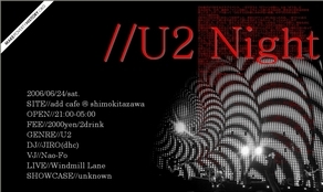 £¶·î£²£´Æü¡¢Åìµþ¡¦²¼ËÌÂô¤Ë¤Æ¡¢DJ¥¤¥Ù¥ó¥È¡ÒU2 Night¡Ó¤ò³«ºÅ¤¤¤¿¤·¤Þ¤¹¡£ ¤È¤Ë¤«¤¯Ä«¤Þ¤Ç°ìÈÕÃæ¡¢U2¤Î¶Ê¤À¤±¤ÇDJ¥×¥ì¥¤¤ò¤ä¤ê¤Þ¤¹¤Î¤Ç¡¢¥®¥Í¥¹°û¤ß¤Ê¤¬¤é²Î¤Ã¤ÆÍ٤äƤ¯¤À¤µ¤¤¡£ ¶Ê¤Î¥ê¥¯¥¨¥¹¥È¤â¥¬¥ó¥¬¥ó¼õ¤±ÉÕ¤±¤Þ¤¹¡£ U2¤Î¥È¥ê¥Ó¥å¡¼¥È¥Ð¥ó¥É¤Î¥é¥¤¥Ö¤ä¥À¥ó¥¹¥·¥ç¥¦¥±¡¼¥¹¤âÆþ¤ëͽÄê¤Ç¤¹¡£ ¥Ù¥Æ¥é¥ó¤Î¥Õ¥¡¥ó¤«¤éºÇ¶áU2¤òÃΤä¿¥Õ¥¡¥ó¤Þ¤Ç¡¢¤â¤·¤¯¤Ï¥Õ¥¡¥ó¤¸¤ã¤Ê¤¯¤¿¤Ã¤Æ¡¢U2¤Î²»³Ú¤ò°ì½ï¤Ë³Ú¤·¤ß¤Þ¤·¤ç¤¦¡£ ¤â¤Á¤í¤ó¡¢¤³¤Îµ¡²ñ¤Ë¥Õ¥¡¥óƱ»Î¤Î¸òή¤â³Ú¤·¤ó¤Ç¤¤¤¿¤À¤±¤ë¤È´ò¤·¤¤¤Ç¤¹¡£ Íè¤ë¤Ù¤U2ÍèÆü¤ËÈ÷¤¨¡¢¤ß¤ó¤Ê¤Ç¥Æ¥ó¥·¥ç¥ó¾å¤²¹ç¤¤¤Þ