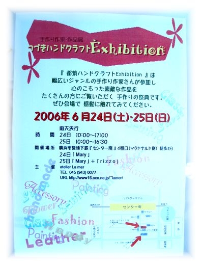 皆様、こんにちは! ご無沙汰しております。(横文字表記に変わりました) 来月、横浜市営地下鉄「センター南」駅そばのレストランにて 手作り作家さん達の作品展を開催いたします。 手作りが大好きな方々の作品をもっと お友達やいろんな方々に見ていただける場を 作っていきたいと思い アトリエ周辺の方々と協力して 作品展を企画致しました。 皆様と共同で盛り立てたいと考えております。 日々、心を込めて作品作りに取り組んでいらっしゃる 皆様のご参加を心よりお待ちしております。 『つづきハンドクラフトExhibi