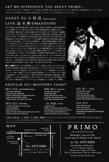 FEE: 3000yen/1drink, w.f. 500yen off, adv. 2000yen/1drink