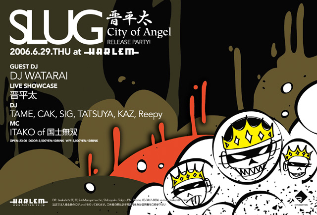 やって来ました!SLUGです。平日不定期イベントにも関わらず過去4回、毎回満員御礼凄まじい事になっていましたが、今回はSPECIALですよ!SPECIAL!! MC BATTLEではその名を知らぬ者はいないであろう王位継承者、晋平太が待望のミニアルバムをリリース。そのRELEASE PARTYを盛大にやってしまいます。BATTLE MCとしてフリースタイルだけ