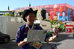 私たちはステッカーを300円で販売し、それをタイとカンボジア