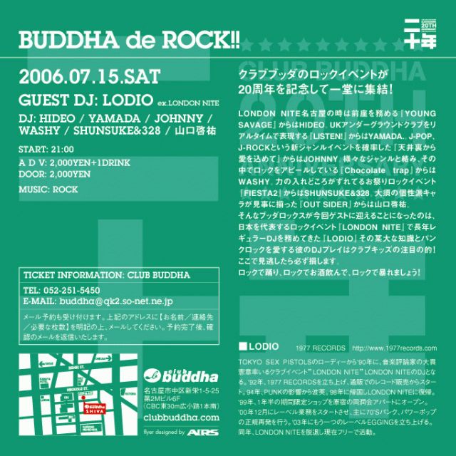 【CLUB BUDDHA 20th anniversary special line up】