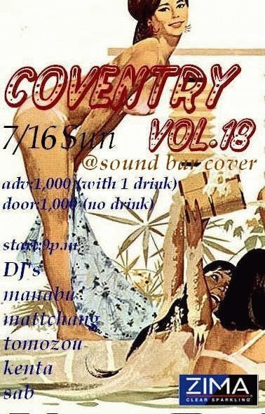 どもども。 奇数月台日曜のレギュラーです。 7/16 coventry vol.18 dj manabu mattchan tomozou kenta sab adv ¥1.000(w/1d) door ¥1.000(no drink) ska,soul jazz、rockなど60'を中心にやってます。 カバーにおいては珍しいジャンルですが、元祖クラブmuzikを聞きにきませんか? まったりするもよし、はじけるもよし、ぜひ体感してみてください。 お気軽にメッセージください。 取り置きもバンバン受けつけてます。