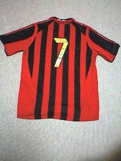 大井町のサルはお疲れさま。 今回、一応勝ち越したし大健闘だったね。 さてさて。みんなお待ちかねのユニがきましたぞ〜。 一足先に袋から開けてみたんだが(写真載っけとくね)、さすが名門ACミランだけあってなかなかカッコイイ! ソックスは品切れということでユニフォーム上のみで、税込みで一着\9345。背番号代は「12着も買うんだから負けろ〜」てことで交渉してタダでやってもらいました。その分残金が\19860発生。 こいつをどうするかなんだけど、1)備品を買い揃える。2) 全員に\1655返す。 のいずれかにしようと思います。俺とし