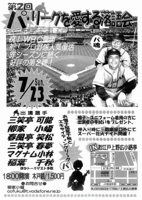はい、チーム高円寺の活動ですよ。 今回はヤスコちゃんリクエストで花火を見に行くとこになりました。 もちろんチーム高円寺に入会してない人も大歓迎! mixiに入ってない人も誘ってOK! 詳細はまだ決まってませんが、決まり次第うぷしていきます。 【場所】多摩川河川敷 【交通】京王線京王多摩川駅から徒歩3分 京王線調布駅から徒歩15分 小田急狛江駅北口から多摩川住宅行きバスで7分、多摩川住宅南口下車徒歩5分 【交通メモ】京王線調布駅から臨時バス運行(予定) 世界的に有名な老舗の丸玉屋小勝煙火店が打ち上げを担当する。