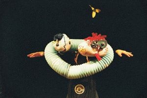 この4月にリニューアルした横浜人形の家で、「ブルガリア国立芸術家組合主催2005年度イカルス演劇賞人形劇芸術部門グランプリ」を受賞したという、ブルガリア人形劇「カールソン」を上演します。 出演は「テアタル・シテ」というブルガリアの人形劇団。人形美術には、山村倫さんという日本人アーティストが関わっています。山村さんは、ブルガリアの首都ソフィアにある国立演劇・映画アカデミー・人形劇舞台デザイン科を卒業し、「カールソン」がデビュー作品だそうです。日本公演に向けて、役者のふたり(ズドラヴァ・カメノヴァさん、モニカ・