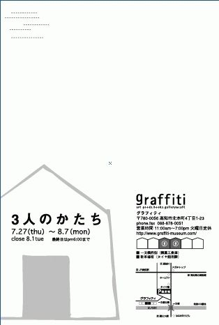 「3人のかたち」 が本日より開催中です! asako-zirusiさんの 消しゴムはんこ100種類 manaさんの金属を使った染め物作品が20点 HKBさんの様々な素材を使ったふくろ作品25点 graffitiは移転よりこれまでは、OPENING EXHIBITIONとして フィギュアに関するものをピックアップして開催してきましたが、 今回の展覧会はクラフト作家さんです。 ナチュラルテイストな魅力のある作品たちを、 あなたの生活の普段使いにおひとついかがですか?