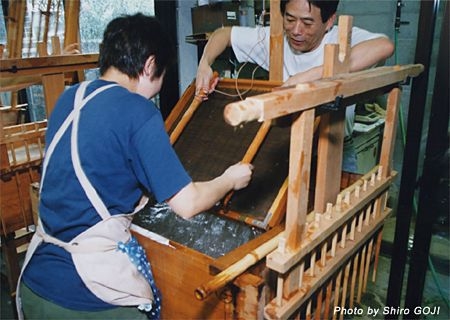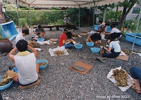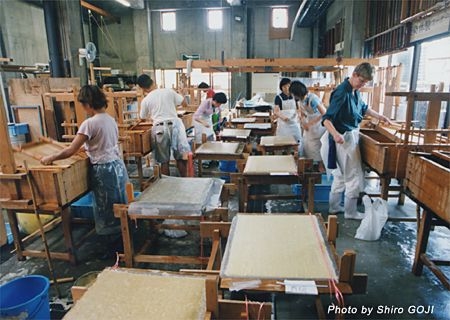 手漉和紙の暖かみがどこから生まれてくるのか、紙漉き作業を通じて自らで体験 できる機会です。楮の皮むきから煮熟、打解、紙漉き、乾燥作業までを指導しま す。初心者を対象として開催し、和紙の製造に興味のある方、更に深く和紙を追究したい方などに好評を得ています。年に一度の機会に、ぜひご参加下さい。 また、プログラムに付随したミニ講習として、徳島名産の藍を用い和紙を染めた り、和紙の加工の実習・講演を計画しています。(*写真は、第19回研修会の様子) 【第21回研修記録】━━━━━━━━━━━━━━━━━━━━━━━━