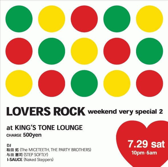 告知お願い致します。 “LOVERS ROCK” GUEST STEP SOFTLY より 男前! RUDIE NAOKI 大塚氏 の登場です!!!! CHARGE FREE 9:30PM〜 @KING'STONE LOUNGE http://mixi.jp/view_community.pl?id=581365 ●名物!W 女子に大人気!!● 本PARTYのみ限定 Naked Steppers オリジナル カクテル “LOVERS ROCK SWEET” NEW カクテル!!!! “TEQUILA SWEET” も お楽しみ下さい! ★★★ 7PMより “““オシムJAPAN 初陣””” サッカー日本代表 VS トリニダードトバゴ(通称 SOCA WARRIO