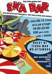 8月のSKA BARです!今日の18:00からです。チャージはたったの500円で1ドリンク付きと破格です!特に夏休み中の学生の皆さん時間ありましたら気軽に遊びに来て下さい♪