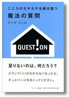 こんにちは! みなさん、「魔法の質問」っていうメルマガ知ってます? 毎日、いろんな質問を投げかけてくれることで、 より自分のことが分かったり、やる気が出たりする コーチング関係のメルマガです。 http://www.mihiro.jp/mq/ 今、コーチング関係のメルマガで日本で一番人気があります。 そしてその発行者であるマツダミヒロさんの2冊目の本が出ました! 1冊目が出たときは、ライフワークパーティ!と共催で出版記念ライブを行いました。 http://www.amazon.co.jp/gp/product/4763196782/250-2036947-1668224?v=gla