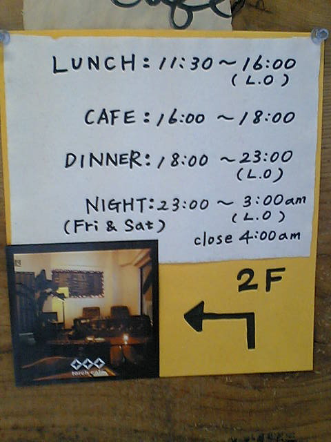 ランチの会してきました!! 場所は、恵比寿西口から駒沢通りを代官山・目黒方面へ。 2つめぐらいの交差点の角(道の左側)のビル2Fです。 【torch cafe(トーチカフェ) 】 カフェ!!!! って感じのお店☆ 内装はユーズドソファがどっしりとあって とても落ち着けます。以前行ったロジェカフェ (http://mixi.jp/view_event.pl?id=8663629&comm_id=1017347) と似ているなーと思っていたら同じ系列のようですね。。。 ソファが座りやすい。 そして雰囲気がいい。 そして、値段も安く、おいしい。 実は、MOKIのオス