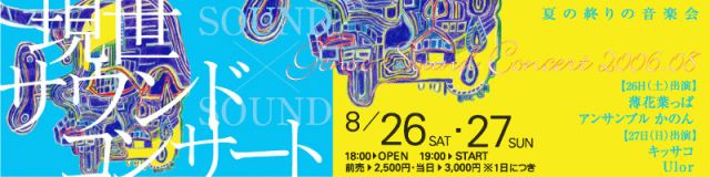 【開催期間】 2006年8月26日(土)・27日(日) 雨天決行 (【Ulor】の出番は27日です。お間違いなく) 【開催時間】 開場18:00 開始19:00 〜 終了21:00 【開催会場】 禅居庵 建仁寺山内南西 【入場料金】 前売 2,500円 当日 3,000円(1日につき) 【予約方法】 8月1日午前10時より受付開始。予約分完売!!でも若干当日券もあるそうなので、そちらを考えている方はお早目のご来場を。 詳しくはこちら http://www.tooma.info/ 地図はこちら↓(お寺のサイトではありませんが・・・/笑) http://www.jra.go