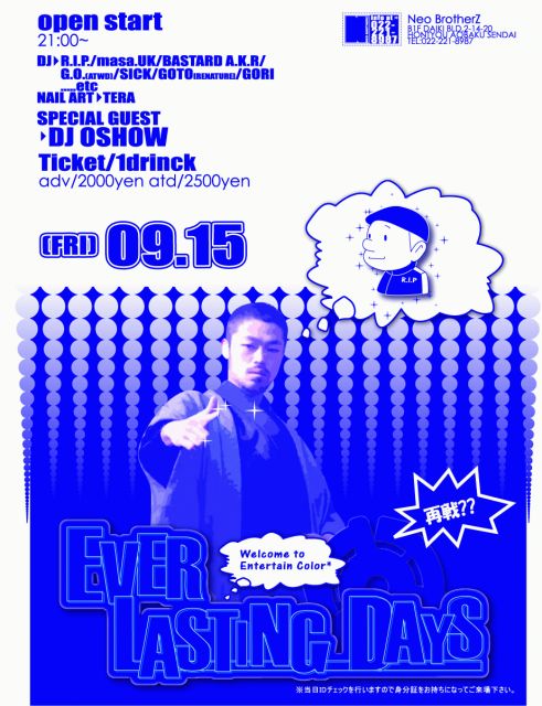 SUPPORT DJ/菅井ヒロシ(BPM)、KAAANJI(AFTER DARK)TASHI-ROCK Jr!(AFTER DARK)、MAIKOR(AFTER DARK)、BEATELLE(AFTER DARK