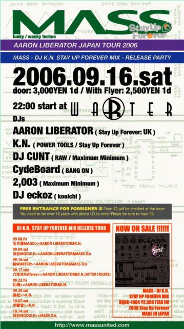 MASS -funky/wanky techno- in KASHIWA WARTER