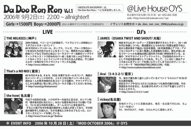20:00-MID @ club buddha 前売り 1800yen+2DRINK 当日 2000yen+2DRINK