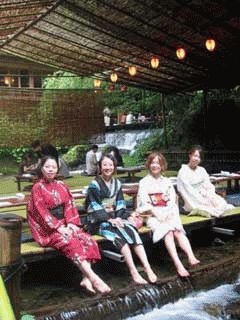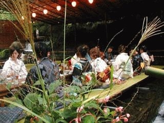 挨拶代わりに、「暑いですねぇ」って口にしているのではないでしょうか。 そんな季節に、まさに打って付けの場所が京都の貴船川床。街中とは5、6℃も気温が低く、清涼感に包まれます。 毎年好評の「浴衣で貴船川床」も今年で3回目になります。 夏最後の浴衣着納めついでに、川のせせらぎを聞きながら、懐石料理に舌鼓を打ってみてはどうでしょう。 /////////////////////////////////////////// 日程 :平成18年9月3日(日) 場所 :貴船「兵衛」 tel :075-741-3066 URL :http://www.kyoto.zaq.ne.jp/kibune-hyou