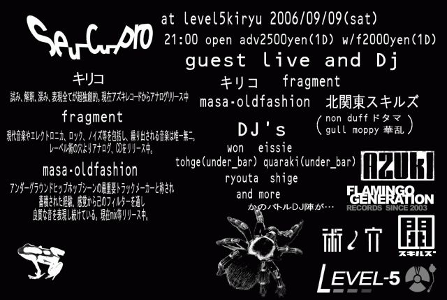 charge : door/3500yen(1d) with flyer/3000yen(1d)