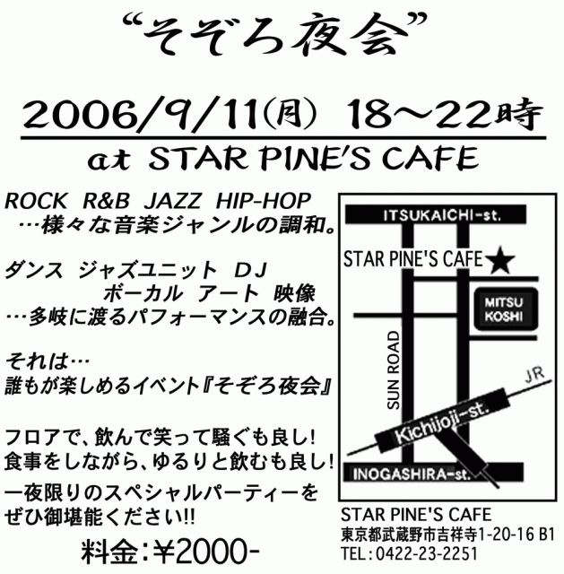 19:00start~ ¥2000/1D w/f ¥1500/N.D. 60人限定