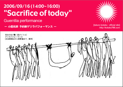 I become a sacrifice. A spectator ties my both hands and my both legs and carries me. which improves. We're walk from Shibuya to Omotesando.