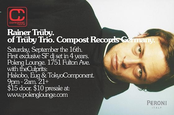 Rainer Truby of Truby Trio (Compost Records) is an internationally acclaimed DJ, known for crossing the boundaries between retro and future jazz, deep house, drum n bass and electronic music. Truby has contributed to numerous compilations including Gilles Peterson's Talking Jazz III, Nuphonic?s