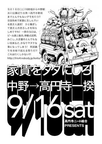I become a sacrifice. A spectator ties my both hands and my both legs and carries me. which improves. We're walk from Shibuya to Omotesando.