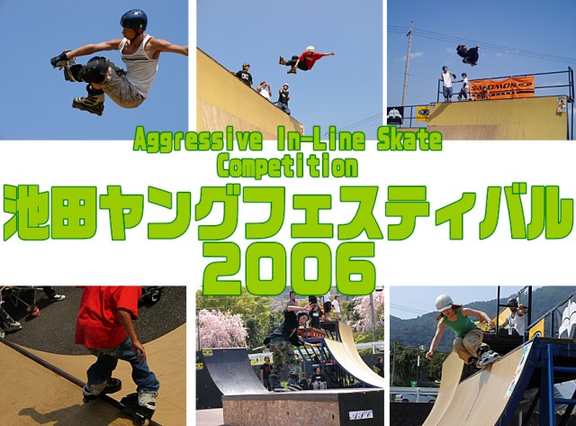 日付: 2006年9月17日(日)雨天中止 会場: 岐阜県揖斐郡池田町 霞間ヶ渓スポーツ公園内チャレンジ広場 種目: ・アグレッシブスケート(ストリート/ミニランプ) ・ハーフパイプ エントリー費: 一般:2,000円 小学生以下:1,000円 Schedule 9:00 〜 エントリー受付(当日受け付け可能です) 10:00 〜 開会式 10:15 〜 アグレッシブスケート 1Run目 (ストリートセクション 50秒) 13:00 〜 アグレッシブスケート 2Run目 (ミニランプ 40秒) 14:00 〜 ハーフパイプジャムセッ