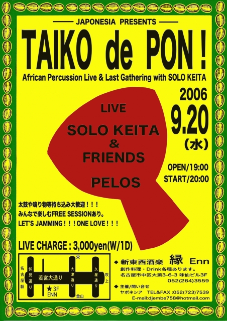 ギニアから来日中のジャンベフォラ“ソロケイタ”をはじめ素晴らしいアーティストが名古屋に集結!!!