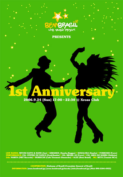 ベンブラジル1周年イベント!4ライブバンド、3ダンスパフォーマンス、4DJs。ほんの少しブラジルを、歌って踊って幸せに!記念のスーパパーテイへどうぞ遊びに来て下さい。お待ちしてます!