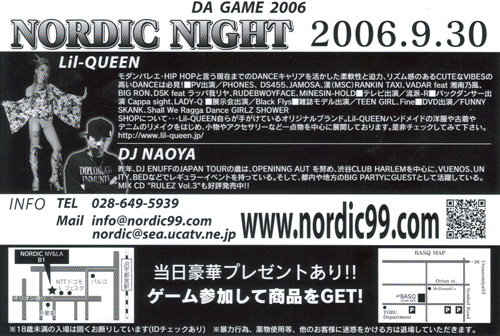 SATURDAY 2006.9.30 @BASQ SOUND AREA ADV\2000(1D) GATE\2000 22:00〜5:00 GUEST DANCER LIL'QUEEN GUEST DJ NAOYA DJ RYO-JI TAKA-Gee U-ONE MC IWACCI SHO-W 2DA LOW HIMID DRUNKEN.D DANCE FREE FLAVOR B.G.bang MARINO みなさん遊びに来てくださいね!