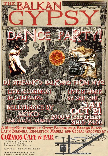 今月21日に渋谷のCozmos CafeでStefankoさんがバルカン/ジプシー音楽のDJパーティ&ライヴをやるそうです。私も多少お手伝いさせていただくと思います。