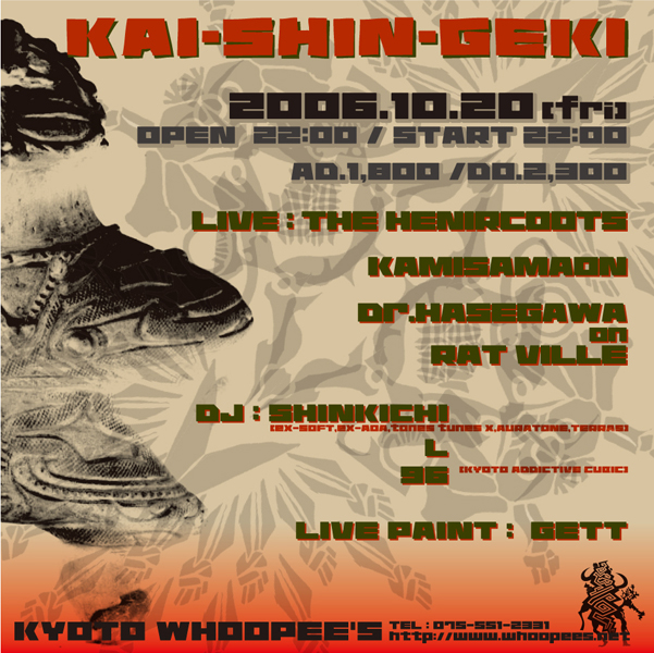 京都八坂はWHOOPEE'Sに集ったTHE HENIRCOOTS、カミサマオン、DJ Lの三つ巴インフィニティバイブレーションファイターズを