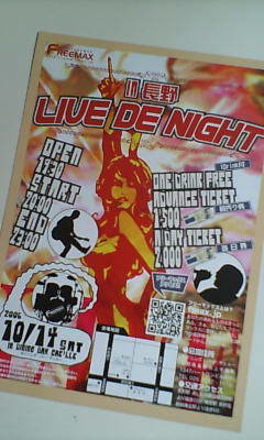 ☆freemaxNAGANOよりinfoです(^^)♪ 来る10月?日(OPEN)19:00(START)20:00〜 会場)チェルー ☆LIVEdeNIGHT♪(前売り\1500・当日\2000) 1drink付き♪♪ 関西からも人気バンドが出場! もちろん地元の行けてるバンドも多数出場します! 最高に楽しい秋の夜をご一緒しませんか?! 「この夜、楽しさの限界を体感しましょう!!」