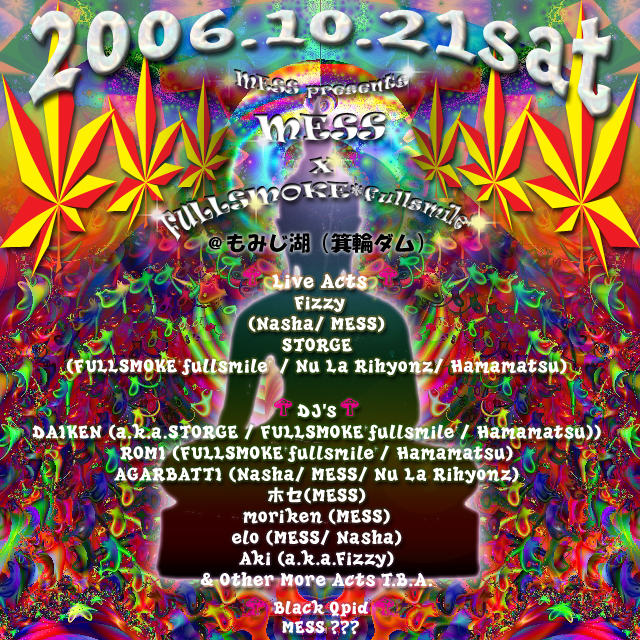 はいは〜い 皆様いかがお過ごしですかね? そろそろ秋の気配が漂ってきました。 さて、 次回のMESSですが 今年もやります MESS@もみじ湖 昨年は夏でしたが今年は秋! Let's サイケデリック紅葉狩り 夜は本気で寒いぞ そして今回は 浜松のFULL SMOKEとコラボでやんす 詳細は未定!追ってお知らせします ❊ฺ❋❊ฺ❊❋❊ฺ❋❊ฺฺฺ❋ฺฺฺ❊ฺ❋❊ฺ❊❋❊ฺ❋
