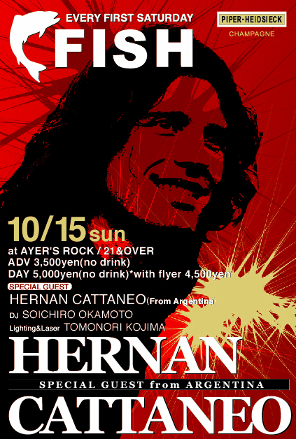 やってきます、HernanCattaneo。前回のRenaissanceTourで不完全燃焼だった方も多かったと思いますが、今回は本人日本好きだから来ちゃいます、なプライベートツアー。お近くの方は是非。 FISH Presents HernanCattaneo @Ayer'sRock (http://ayers.jp/) HERNAN CATTANEO アルゼンチンが生んだ、最初の、そして今現在唯一のスーパースターDJであるエ ルナン・カタネオ。2001年の初来日から、この5年で成し遂げた彼の功績はあま りにも大きい。2001年には50位だった世界のDJランキングだけをみても、2004年 6位、2005年7位ともはやTop 10に入る