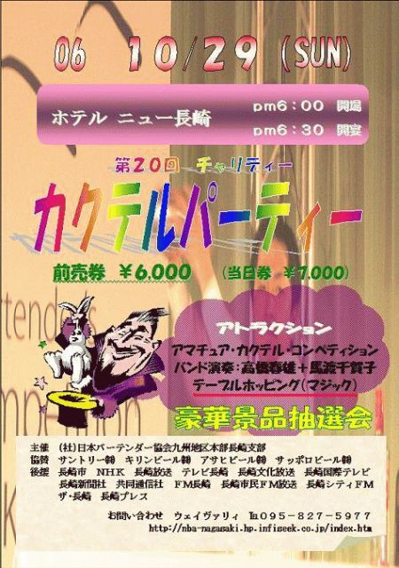 場所はホテル・ニュー長崎 時間は午後6時会場 6時半開宴です。 トピックにしようかイベントにしようか迷ったのですが イベントにした方がコミュの活動としても後々見やすいのでこちらで立てます 中々全員が顔を合わせる機会もないので 互いのネタが被らないよう話し合ったり 連絡等に使ってください